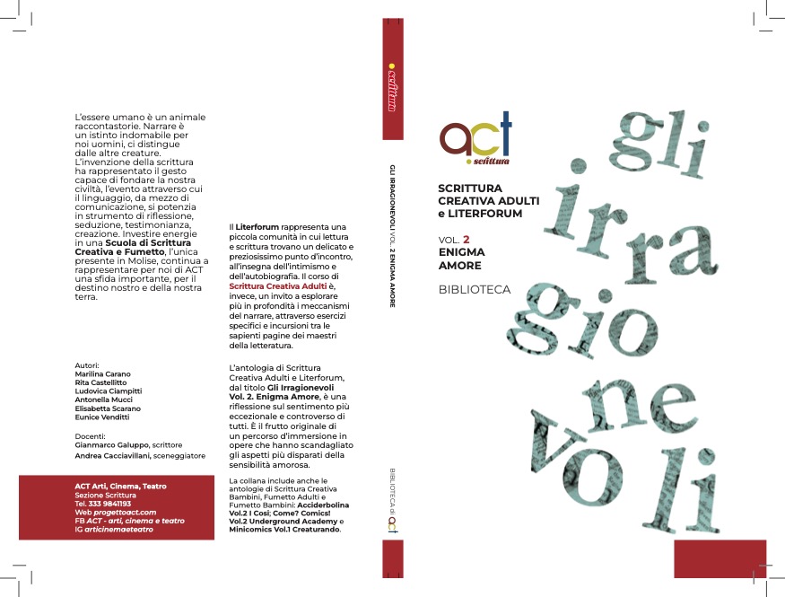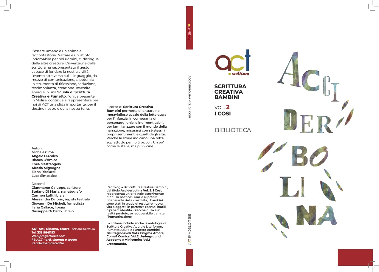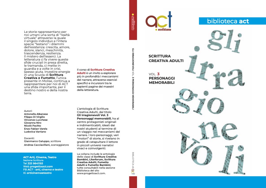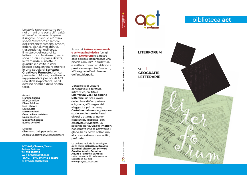 La scuola di Scrittura di ACT, attraverso le antologie contenenti i racconti di fine anno scolastico dei nostri alunni, inaugura una vera e propria Biblioteca Digitale, allo scopo di lasciare una traccia del bagaglio culturale della nostra terra, pieno di sogni, aspettative, delusioni, ripartenze, sfide, storie.